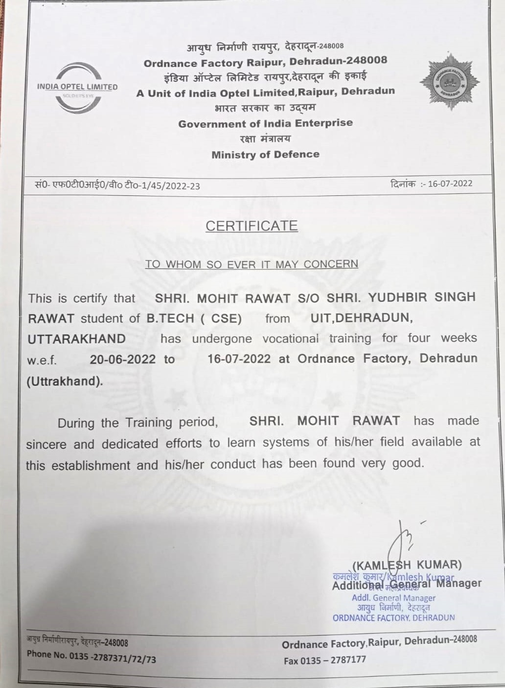 Hello, my name is Mohit Rawat. I am a 2025 graduate from Uttaranchal University, Dehradun. Currently, I am undergoing training at Vector India in the Embedded Systems domain.